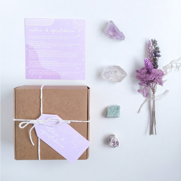 Para si ou para oferecer a alguém especial, um set de cristais preparado para ajudar a atrair o equilíbrio emocional e a tranquilidade.